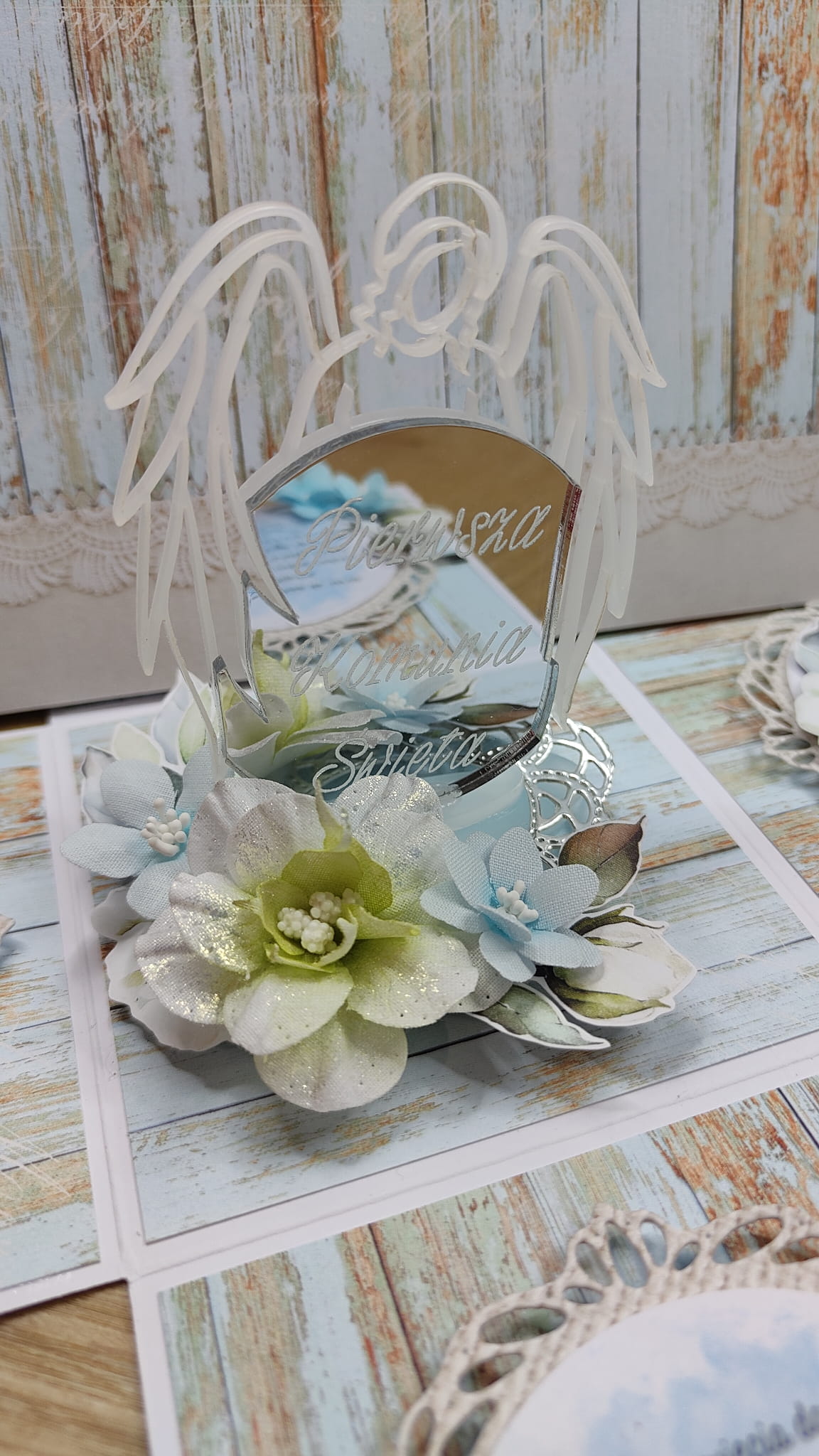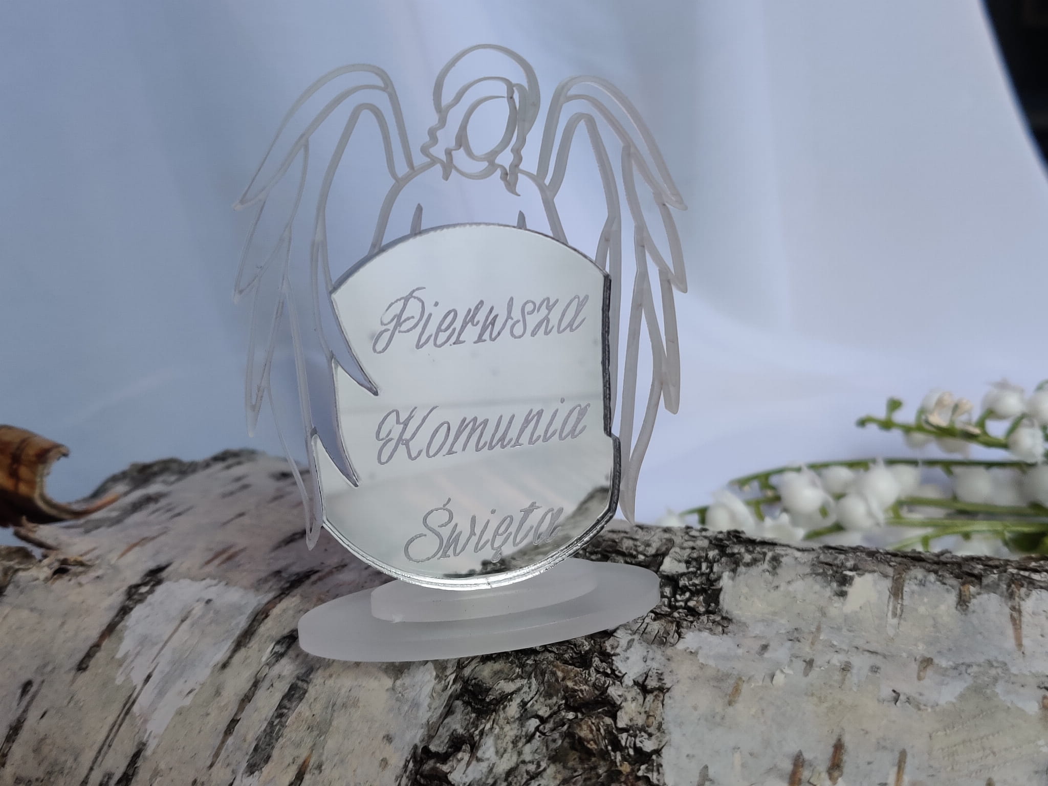 4 szt + 1 gratis Anioł 3d grawer "Pierwsza Komunia" SREBRNA pleksi PK85 (1)