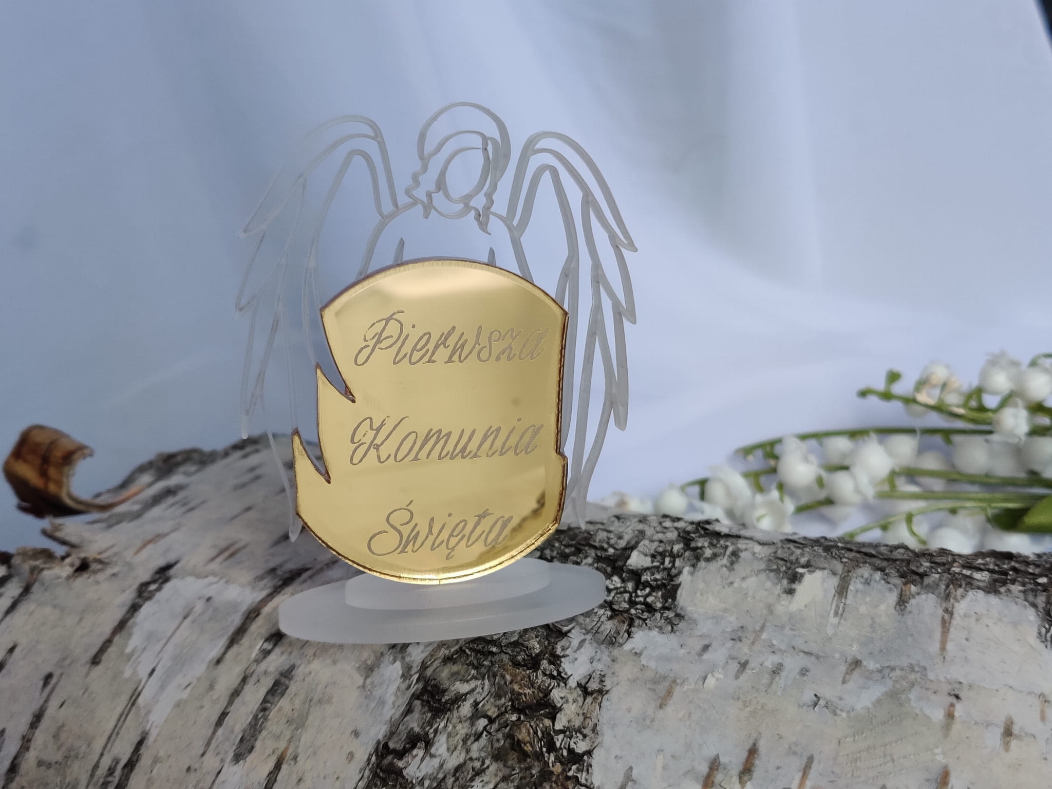 4 szt + 1 gratis Anioł 3d grawer "Pierwsza Komunia" ZŁOTA pleksi PK82 (1)