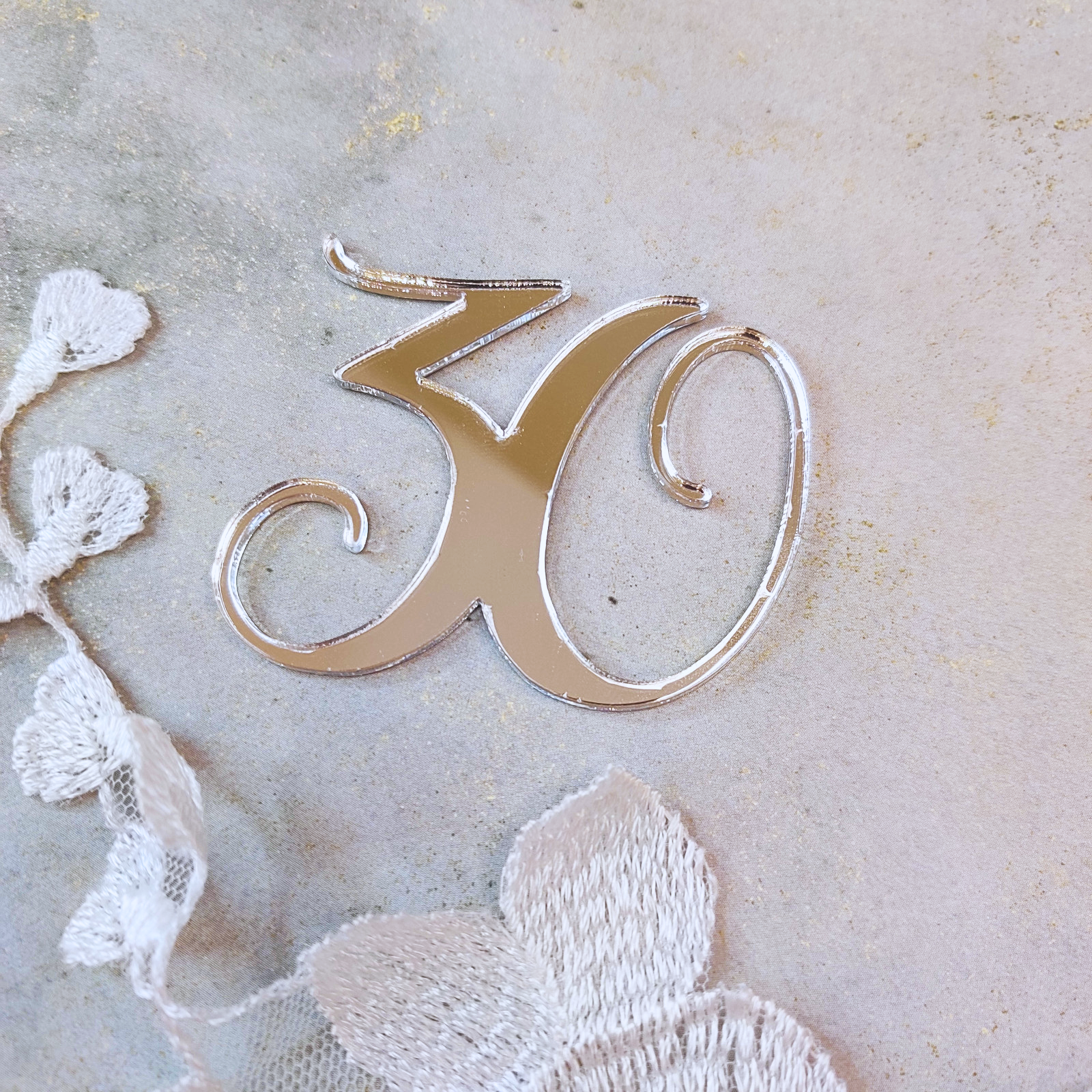 Cyfra 30 srebrna pleksi PL67
