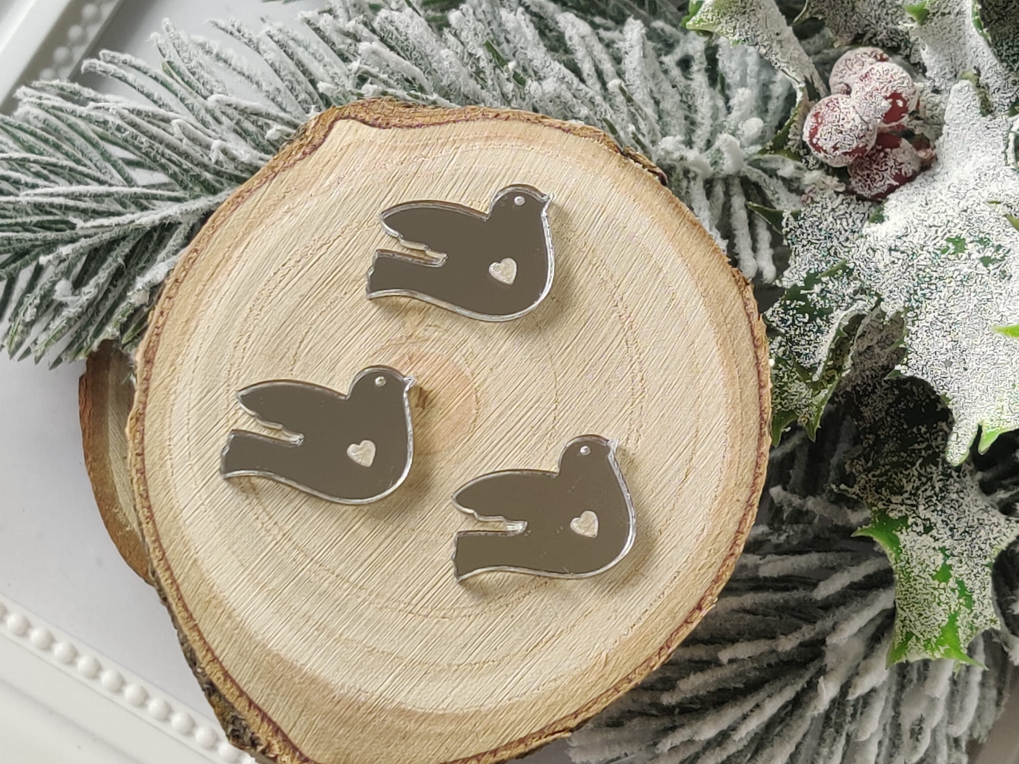 Gołąbek zestaw 3 szt SREBRNA pleksi ZM63