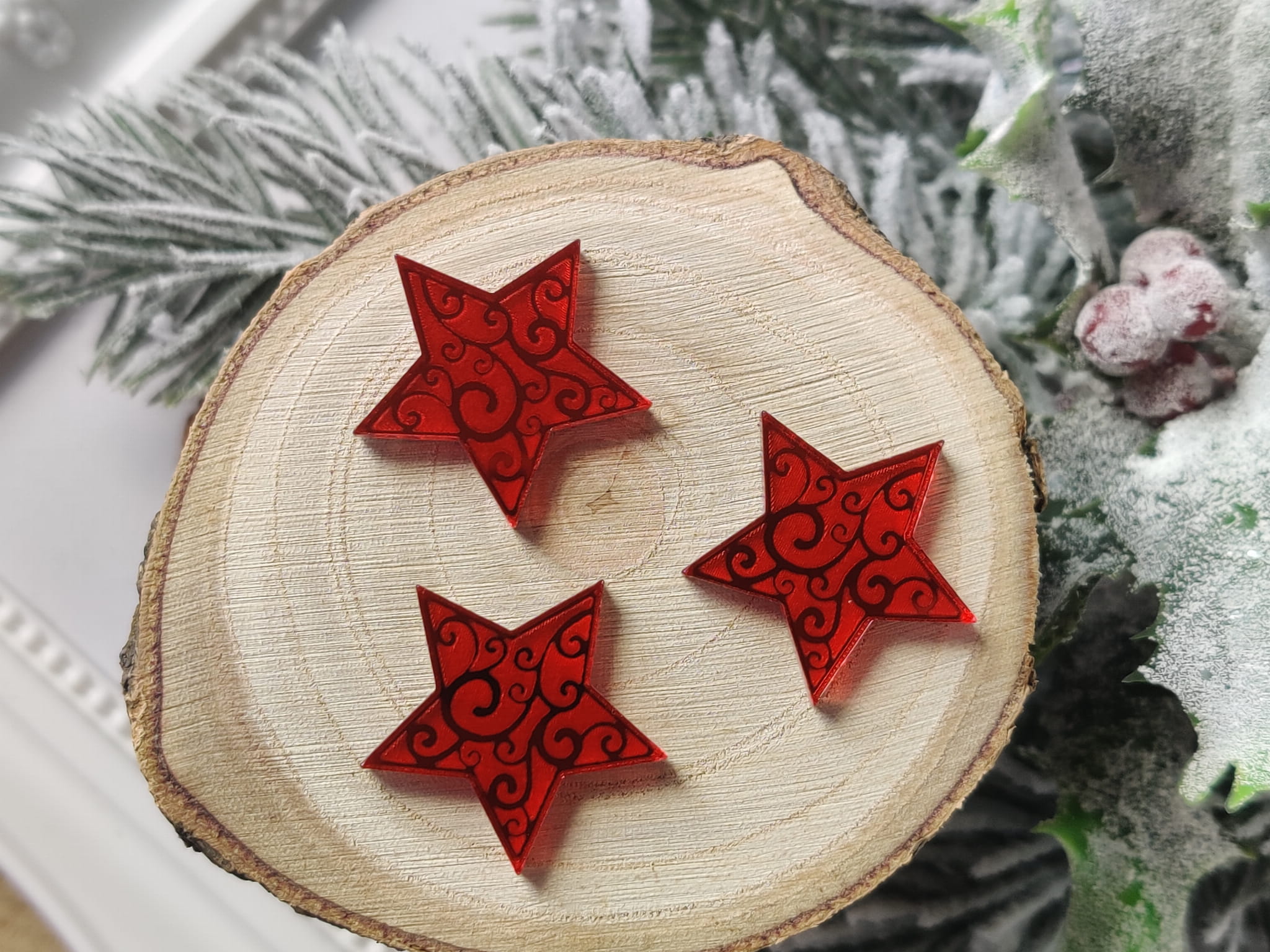 Gwiazdki zestaw 3 szt grawer CZERWONA pleksi ZM60