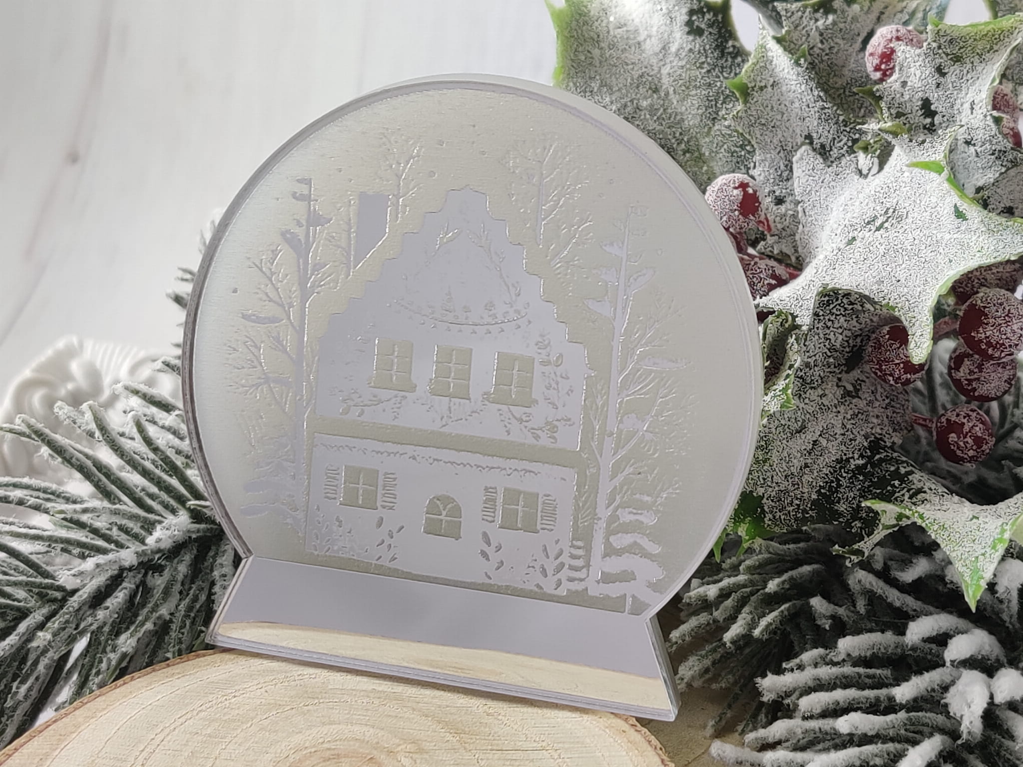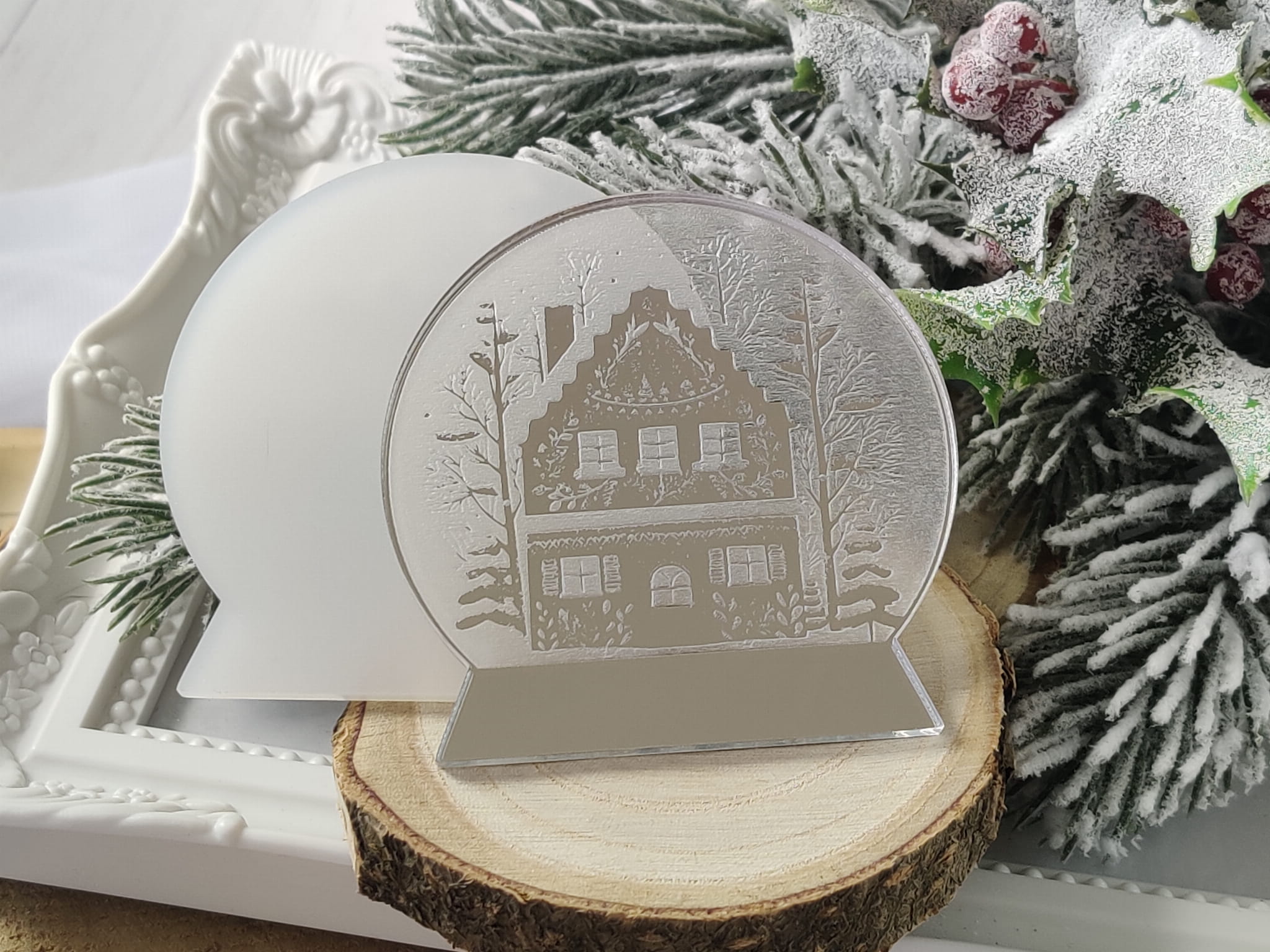 Kula śnieżna 2 grawer 2 warstwy SREBRNA i MROŻONA pleksi ZM16