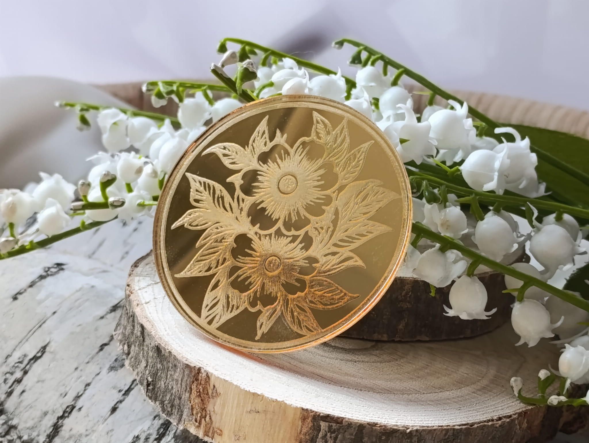 Kwiaty grawer ZŁOTA pleksi KP166