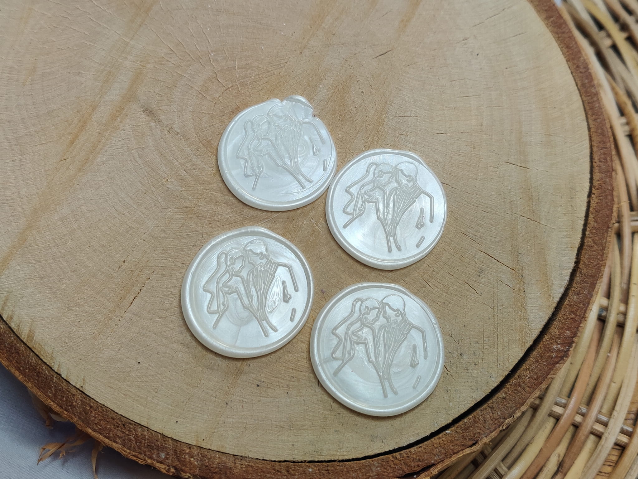Laki biała perła wzór młoda para 4 szt