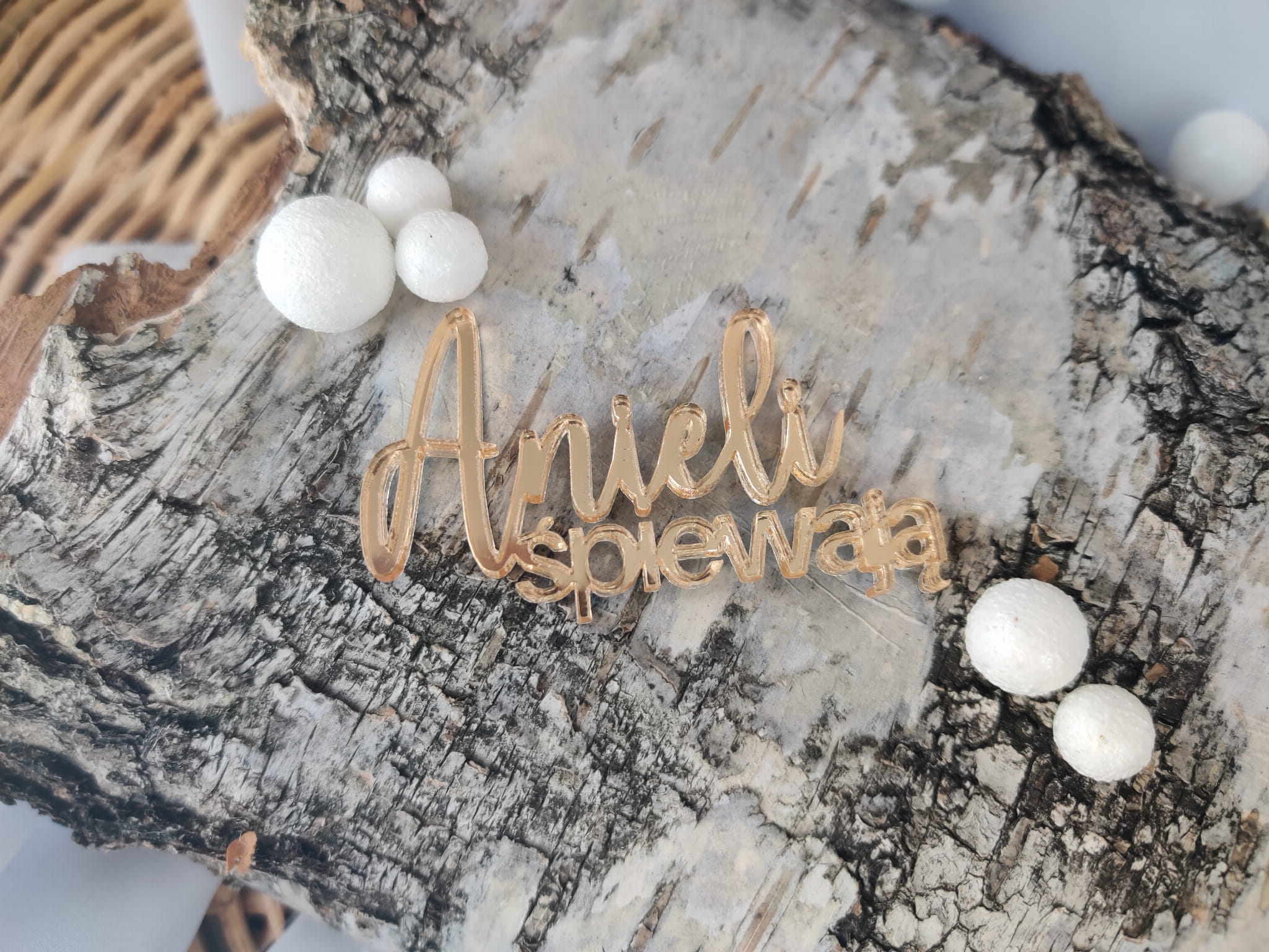 Napis ANIELI ŚPIEWAJĄ złota pleksi