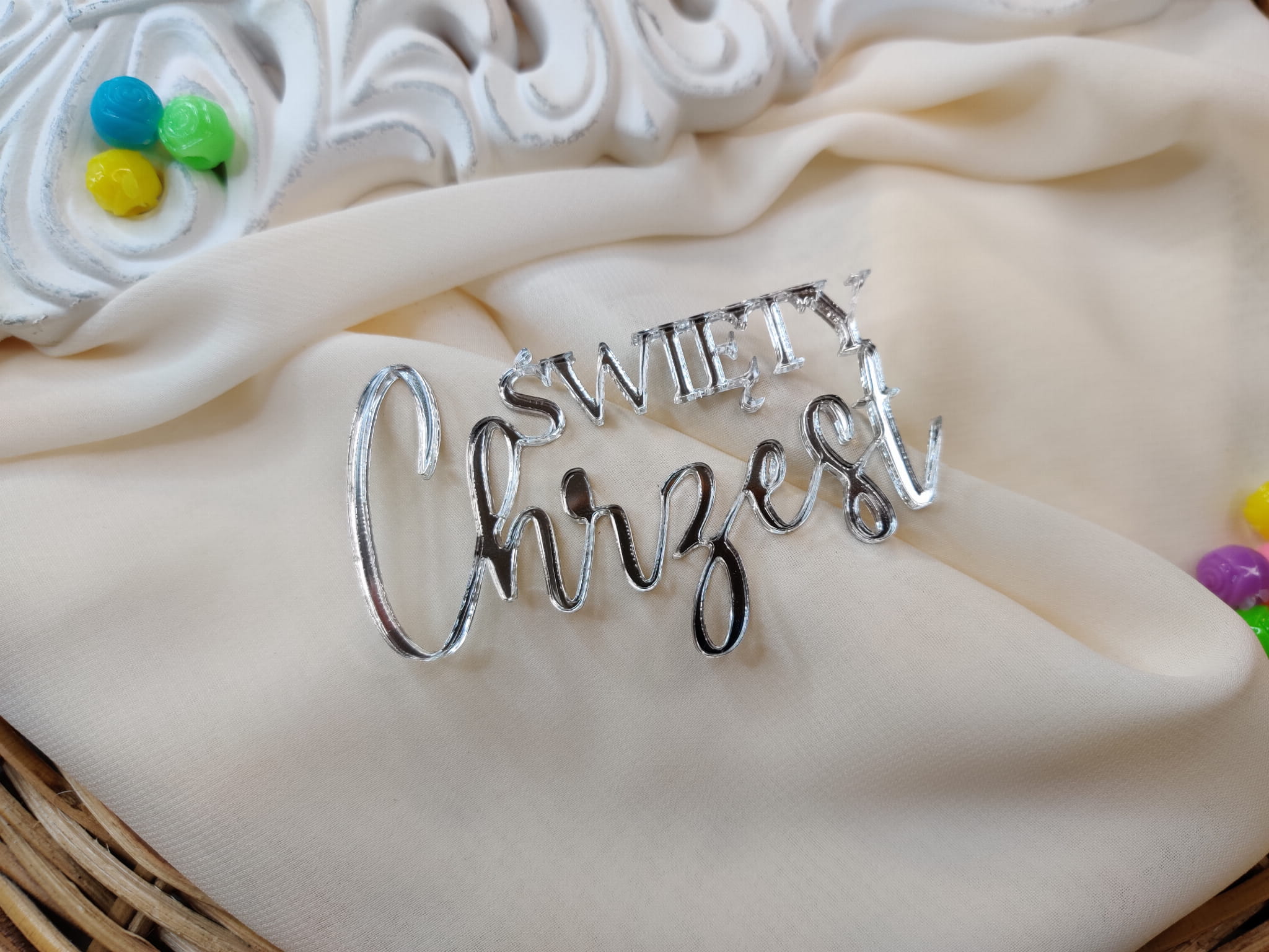 Napis CHRZEST ŚWIĘTY srebrna pleksi SD31