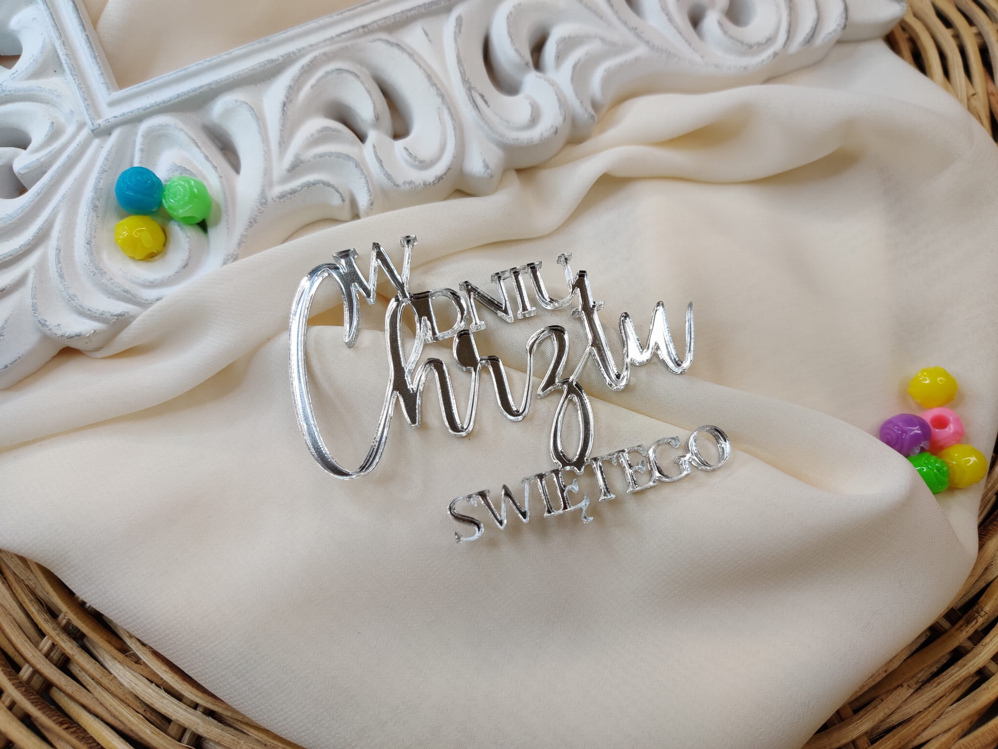 Napis W DNIU CHRZTU ŚWIĘTEGO srebrna pleksi SD44