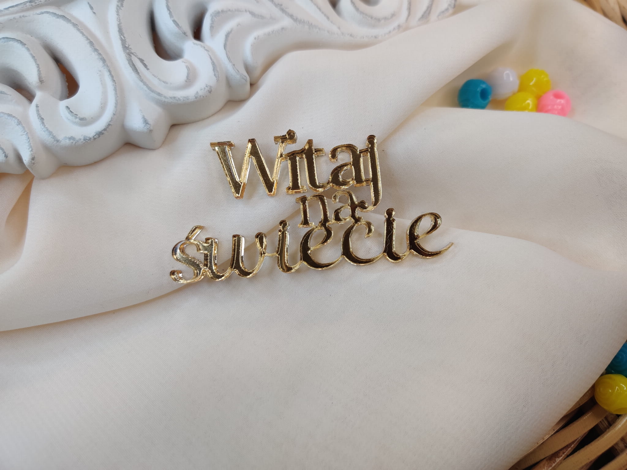 Napis WITAJ NA ŚWIECIE złota pleksi SD28