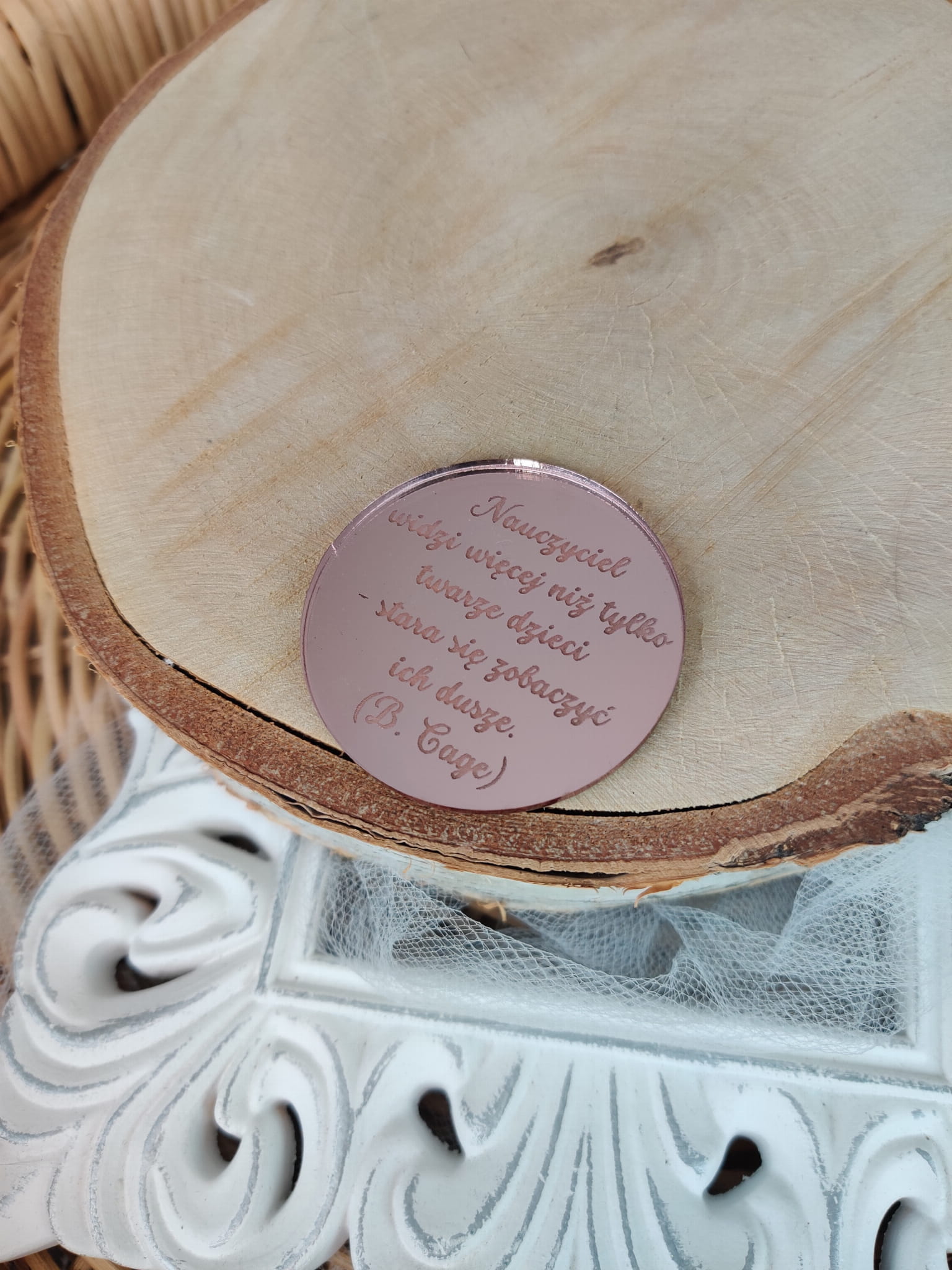 Napis grawerowany na dzień nauczyciela różowe złoto pleksi