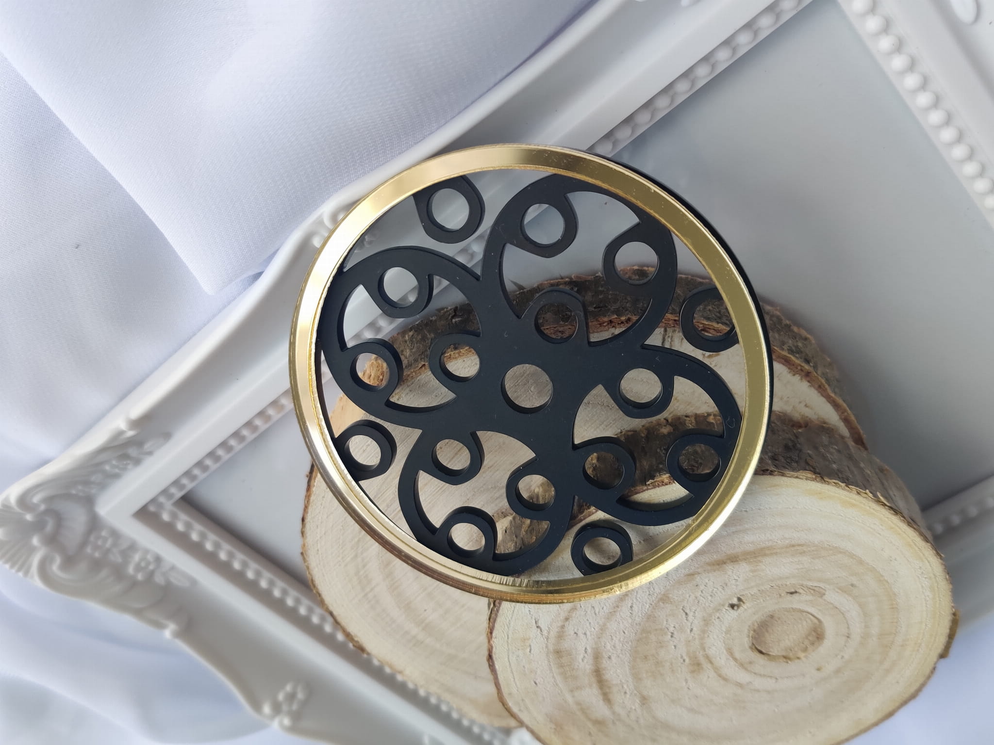Tło 3 CZARNY MAT pleksi plus ZŁOTA ramka MM12