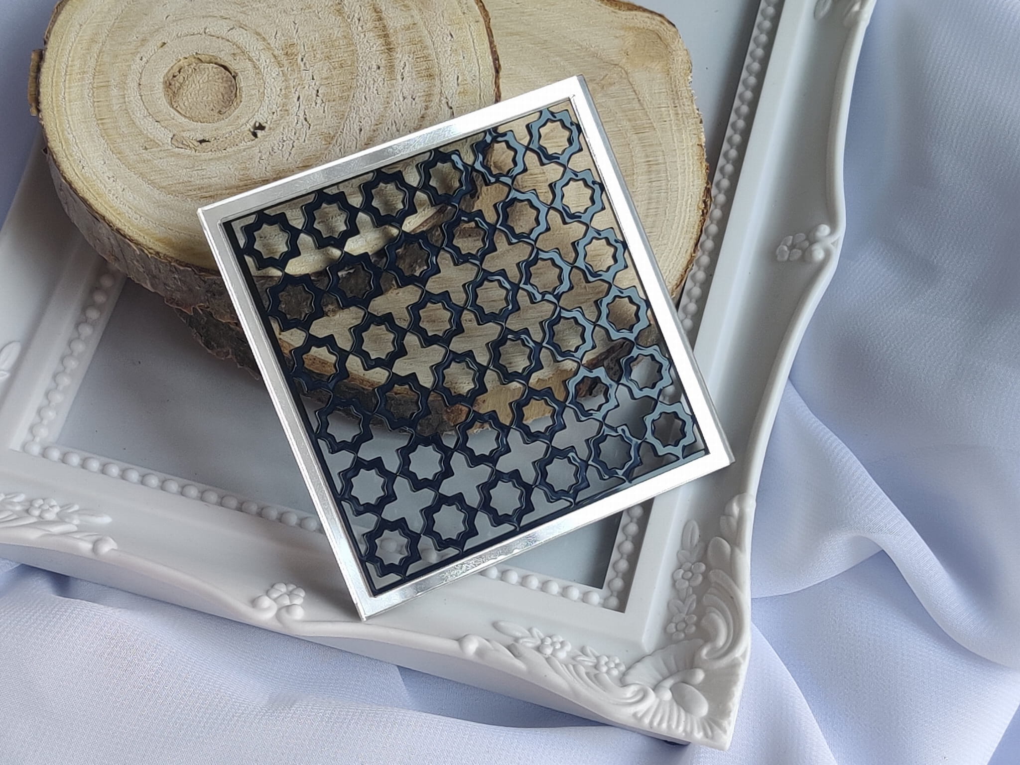 Tło kwadrat 1 CZARNA pleksi plus SREBRNA ramka MM131