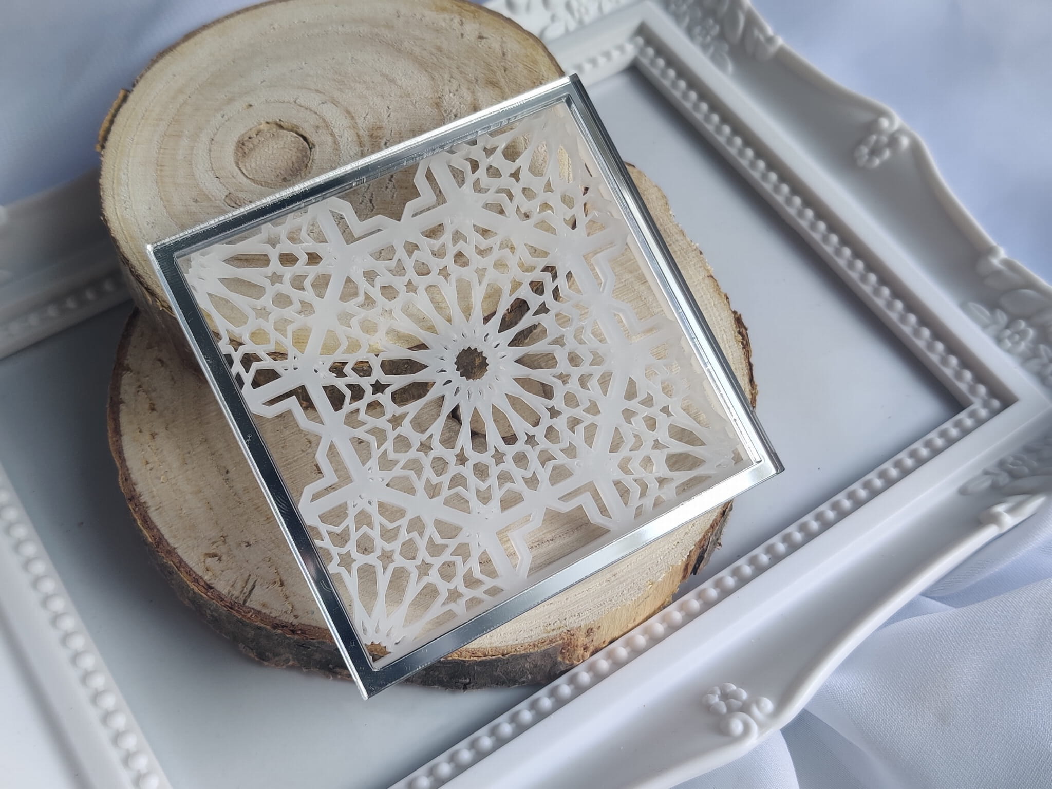 Tło kwadrat 12 MROŻONA pleksi plus SREBRNA ramka MM152