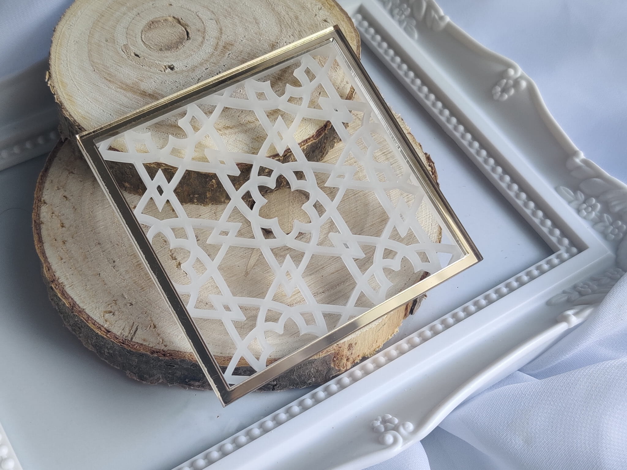 Tło kwadrat 13 MROŻONA pleksi plus ZŁOTA ramka MM154