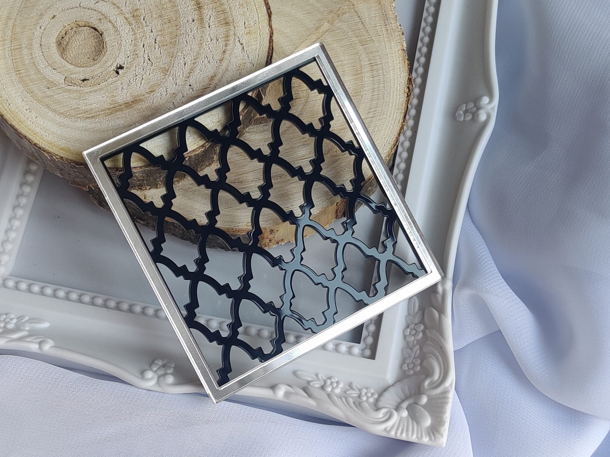 Tło kwadrat 8 CZARNA pleksi plus SREBRNA ramka MM144