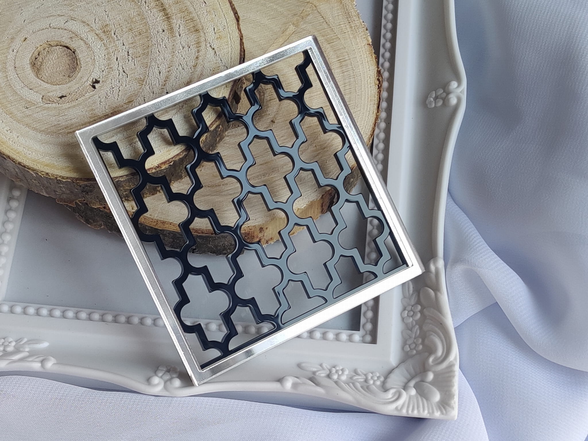 Tło kwadrat CZARNA pleksi plus SREBRNA ramka MM129