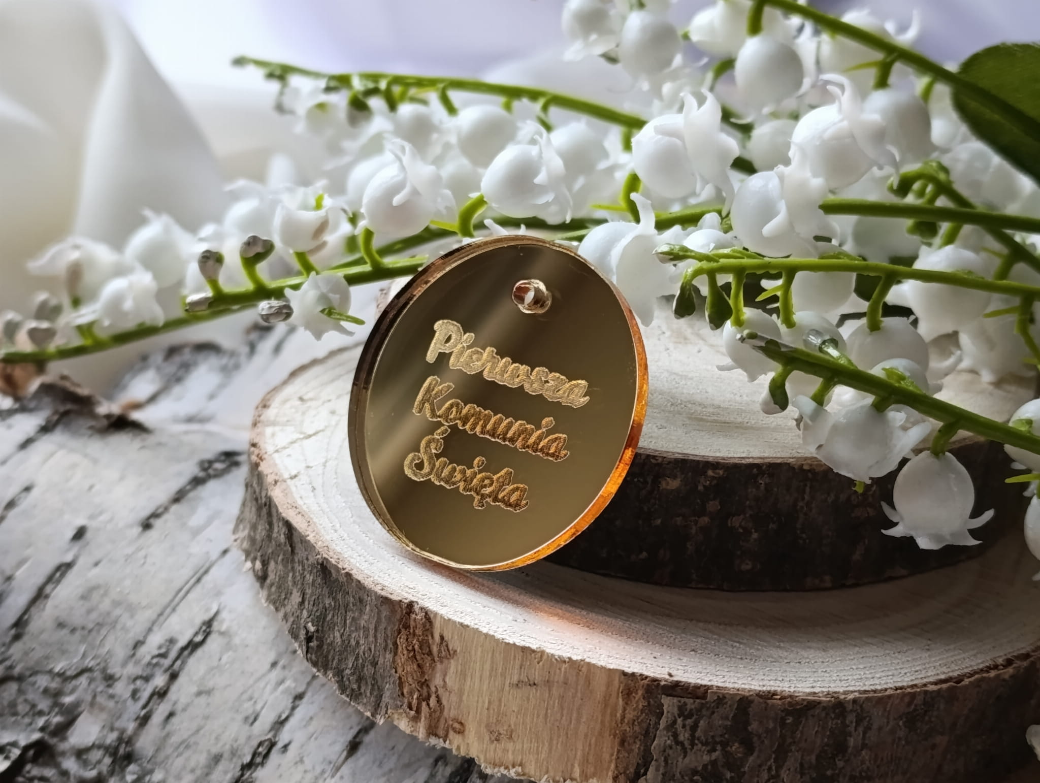 Zawieszka 3 Pierwsza Komunia ZŁOTA pleksi KP53