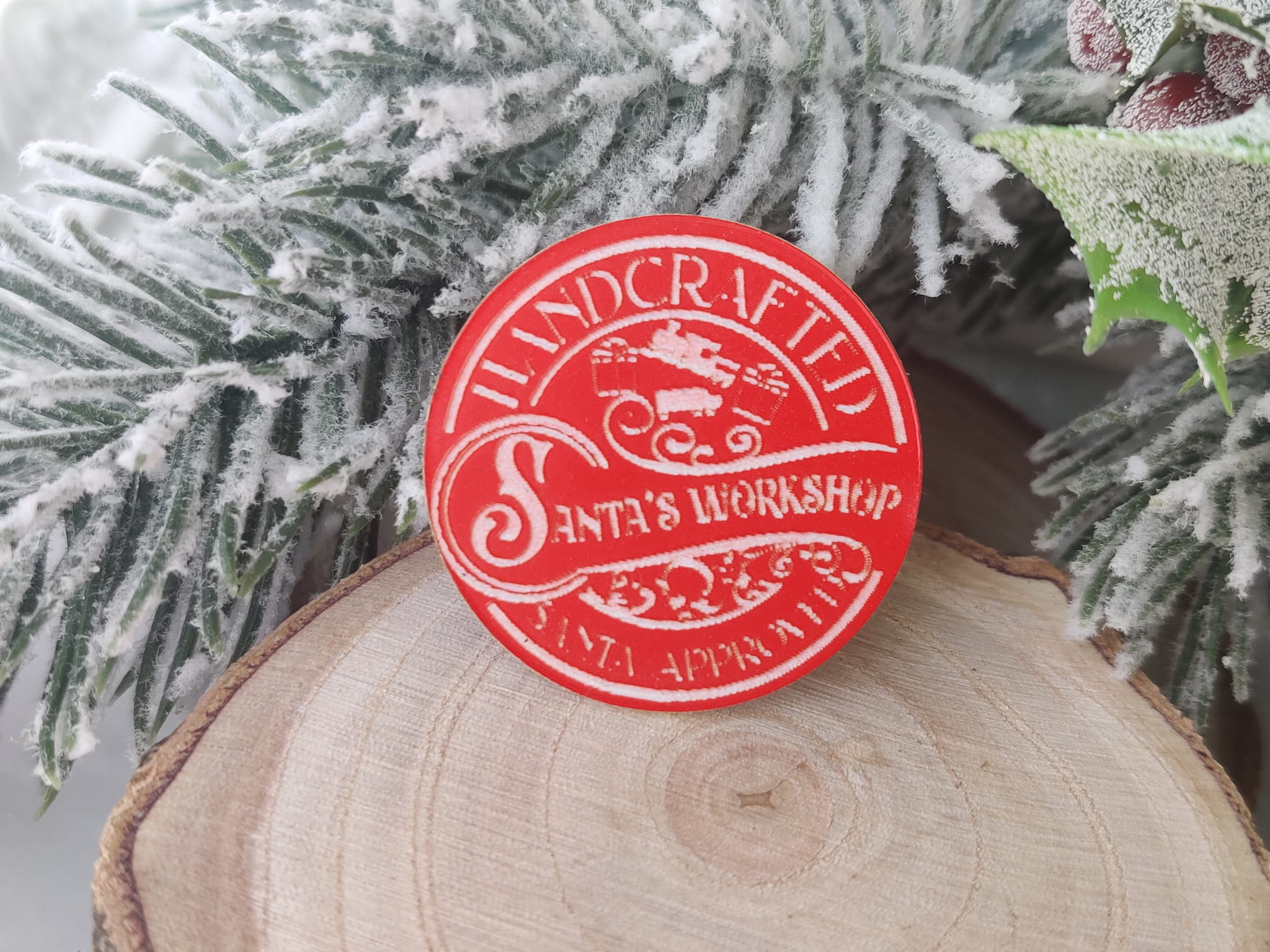 Znaczek Santa's Workshop CZERWONY laminat ZM44